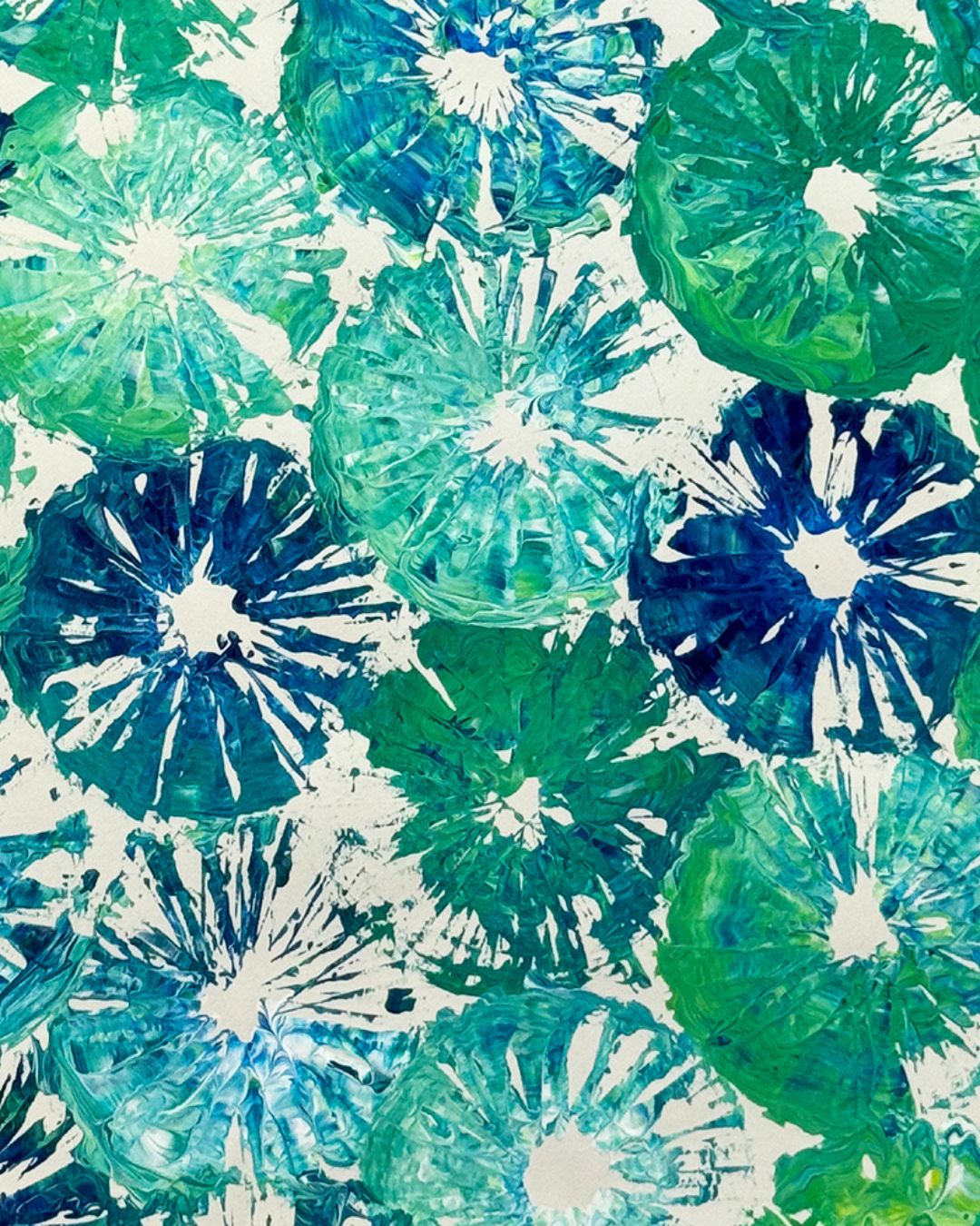 6. Lemon Bag from the Grocery Store I took a mesh bag from a bag of lemons, laid it over a sheet of drawing paper, and rolled paint across it. After letting it dry overnight, I peeled it back to reveal beautiful textures—a simple yet striking effect.