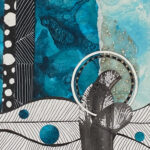 Once you’ve placed pieces down and you’re happy with composition, it’s time to start gluing. I prefer using matte medium and matte gel, depending on the paper thickness. Always glue on both sides—this helps to flatten out any bubbles and ensures the paper adheres well to the substrate, which is usually watercolor or mixed media paper I’ve prepped with gesso.